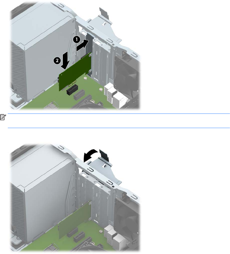 9. Rotate the slot cover retention latch back in place to secure the expansion card.