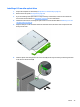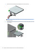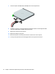 4. Disconnect the cable from the hard drive (2) and the optical drive (3)