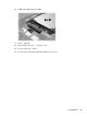 8. 握住并向外拉 HDD 背面旁边的释放杆 (2)。