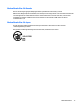 Denna utrustning uppfyller kraven i Avsnitt 68 av FCC-reglerna samt ACTA-kraven. På datorns undersida eller