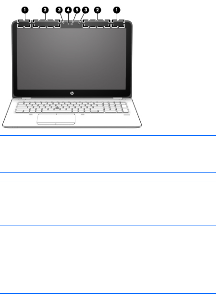 (4) Indicador luminoso de la cámara web Encendido: La cámara web está en uso.
