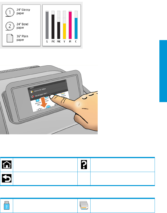 ειδοποιήσεις σχετικά με τις κύριες λειτουργίες του εκτυπωτή. Περάστε το δάχτυλό σας προς τα κάτω στον πίνακα
