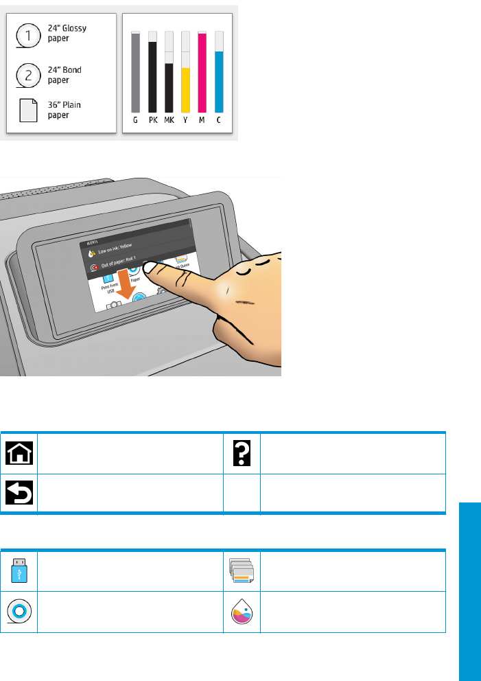 Tüm uygulamalar sayfasının en üstünde, yazıcının ana işlevleriyle ilgili uyarıları gösteren bir pano bulunur. Durum