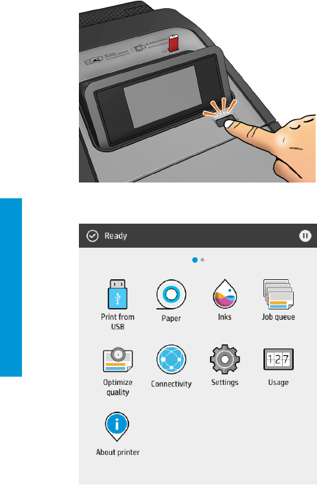 Predný panel je dotyková obrazovka s grafickým používateľským prostredím. je umiestnený na tlačiarni z prednej