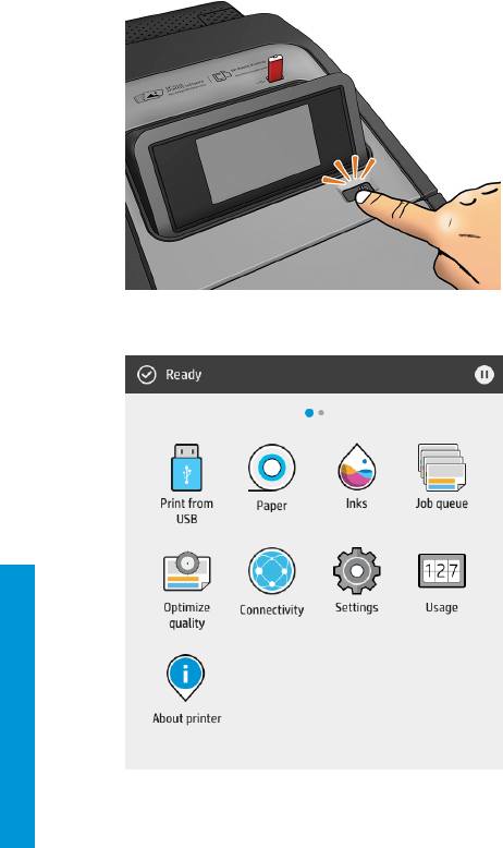 Алдыңғы панель принтердің алдыңғы оң жағында орналасқан графикалық пайдаланушы интерфейсі бар