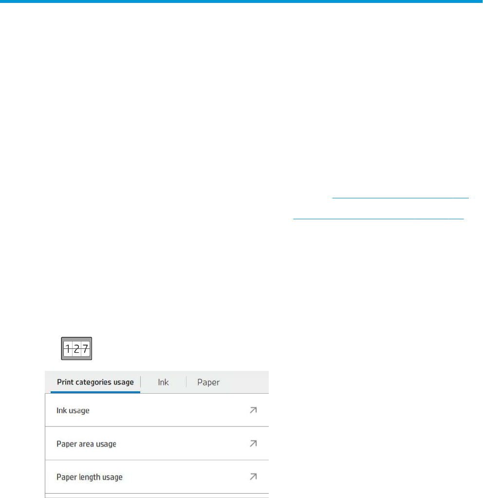 ● View ink and paper usage for each of your recent jobs, see Check usage statistics for a job on page 105.