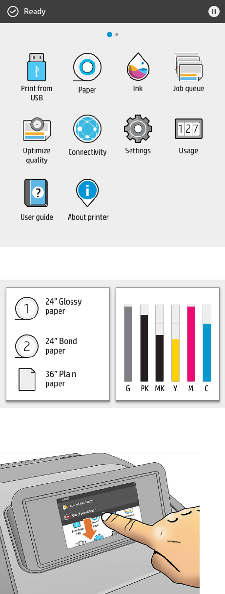 ● If you swipe left to the widget page, you can see at a glance the status of ink and paper supplies.