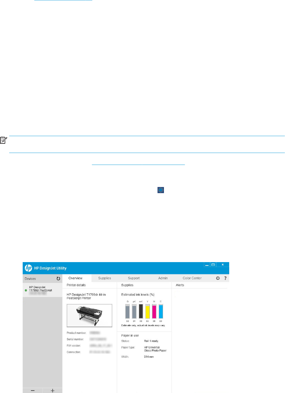 computer. When you open the HP DesignJet Utility for the rst time, it may oer you an automatic update