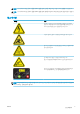 ● 내부 팬 날개는 위험 가동부입니다. 서비스를 받기 전에 프린터를 전원에서 분리합니다.