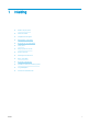 1 NLWW Inleiding ● Welkom bij uw printer ● Printermodellen ● Veiligheidsmaatregelen ● Belangrijkste onderdelen ● De printer in- en uitschakelen ● Front panel ● Hulpprogramma van HP ● HP Print Preview ● Geïntegreerde webserver ● Demo-afdrukken ● De printer configureren ● Afdrukken vanaf een mobiel apparaat ● Toegankelijkheid ● Andere informatiebronnen 1