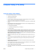● Replicate the system setup by saving system configuration information on USB flash media device or other storage media emulating a diskette and restoring it on one or more computers. ● Execute self-tests on a specified ATA hard drive (when supported by drive). ● Enable or disable DriveLock security (when supported by drive). Using Computer Setup (F10) Utilities Computer Setup can be accessed only by turning the computer on or restarting the system.
