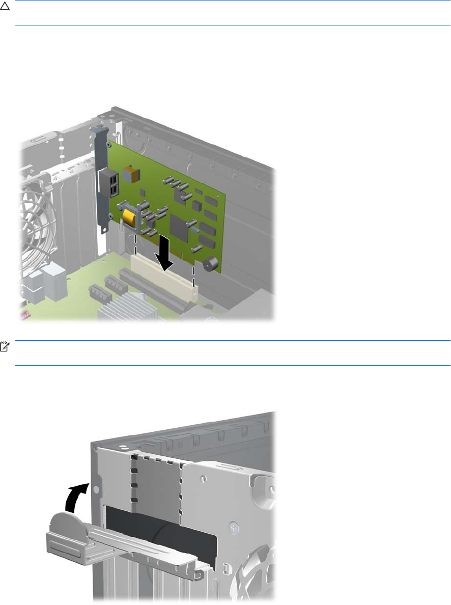 for det åbne slot på bagsiden af kabinettet. Pres kortet lige nedad i udvidelsesstikket på