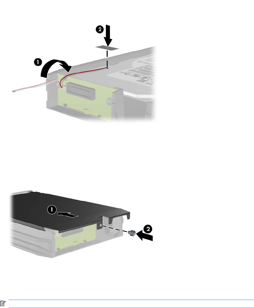 8. Anbring den termiske sensor ovenpå harddisken, så den ikke dækker mærkatet (1), og fastgør den