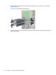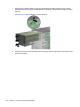 7. Įsukite keturis metrinius M3 kreipiamuosius varžtus į apatines skyles diskų įrenginio šonuose. HP