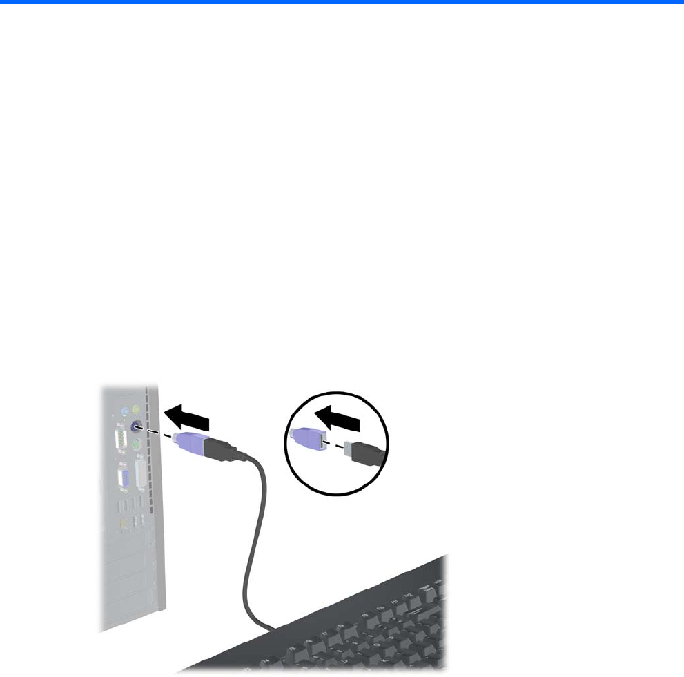 2. Conecte el cable del teclado introduciendo el conector PS2 en el conector PS2 ubicado en la parte