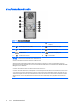 สวนประกอบทีแ ่ ผงดานหนา ลักษณะการจัดวางไดรฟอาจตางกันไปในแตละรุน ตาราง 1-1 สวนประกอบทีแ ่ ผงดานหนา 1 ไดรฟออปติคลั ขนาด 5.25 นิว้ 1 6 ปุมนําออกของไดรฟออปติคัล 2 ไฟแสดงสถานะการทํางานของไดรฟออปติคัล 7 ตัวอานการดมีเดียขนาด 3.5 นิว้ (อุปกรณเสริม)2 3 ไฟแสดงสถานะการทํางานของฮารดไดรฟ 8 ไฟสถานะเปดเครื่องแบบสองสถานะ 4 ชองเสียบไมโครโฟน/หูฟง 9 ไฟแสดงสถานะเปดเครื่อง 5 พอรต USB (Universal Serial Bus) 2.