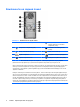 Компоненти на задния панел Таблица 1-3 Компоненти на задния панел 1 Съединител за захранващия кабел 6 Изходен съединител за аудиоустройства със собствено захранване (зелен) 2 Съединител за звуков вход (син) 7 Съединител за клавиатура PS/2 (лилав) 3 Извод за мишка PS/2 (зелен) 8 Извод за VGA монитор 4 Сериен съединител 9 Съединител за монитор DisplayPort 5 Мрежов съединител RJ-45 10 Универсална серийна шина (USB) ЗАБЕЛЕЖКА: Разположението и броят на съединителите може да се различават с