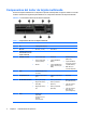 Componentes del panel posterior Tabla 1-3 Componentes del panel posterior 1 Conector de cable de alimentación 6 Conector de salida de línea para dispositivos de audio encendidos (verde) 2 Conector de entrada de audio (azul) 7 Conector de teclado PS/2 (lila) 3 Conector de ratón PS/2 (verde) 8 Conector del monitor VGA 4 Conector serie 9 Conector del monitor DisplayPort 5 Conector de red RJ-45 10 Bus serie universal (USB) NOTA: La disposición y el número de conectores pueden variar según