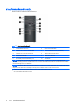 สวนประกอบทีแ ่ ผงดานหลัง ตาราง 1-3 สวนประกอบทีแ ่ ผงดานหลัง 1 ชองเสียบสายไฟ 6 ชองเสียบสัญญาณออกสําหรับอุปกรณเสียงทีใ่ ช ไฟ (เขียว) 2 ชองเสียบสัญญาณเสียงเขา (น้ําเงิน) 7 ชองเสียบแปนพิมพ PS/2 (มวง) 3 ชองเสียบเมาส PS/2 (เขียว) 8 ชองเสียบจอภาพ VGA 4 ชองเสียบอนุกรม 9 ชองเสียบจอภาพ DisplayPort 5 ชองเสียบเน็ตเวิรก RJ-45 10 ชองเสียบ USB หมายเหตุ: ตําแหนงและจํานวนของชองเสียบอาจตางกันไปในแตละรุน พอรตอนุกรมเสริมตัวทีส ่ องและพอรตขนานเสริมสามารถซือ ้ ไดจาก HP เมื่อเส