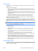 Kui test on lõppenud, kuvatakse üks kolmest teatest: ● Test edukalt läbitud. Lõpetamise kood 0. ● Test katkestatud. Lõpetamise kood 1 või 2. ● Test ebaõnnestus. Vahetage kõvaketas välja. Lõpetamise kood 3 kuni 14. Kui test ebaõnnestus, kirjutage lõpetamise kood üles ja pöörduge arvuti probleemide diagnoosimiseks teenusepakkuja poole. ETWW DPS-i käivitamine häälestusprogrammi Computer Setup kaudu.