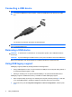 Connecting a USB device CAUTION: To prevent damage to a USB connector, use minimal force to connect a USB device. ▲ To connect a USB device to the computer, connect the USB cable for the device to the USB port. You will hear a sound when the device has been detected. NOTE: To view the USB devices installed on the computer, select Computer. Look under Status for a list of installed USB devices.