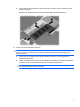 b. Fassen Sie das Speichermodul an den Kanten (2), und ziehen Sie es vorsichtig aus dem Speichersteckplatz. Bewahren Sie Speichermodule in einem elektrostatikgeschützten Behältnis auf. 14. Setzen Sie ein neues Speichermodul ein: ACHTUNG: Um Schäden am Speichermodul zu vermeiden, fassen Sie das Speichermodul immer nur an den Außenkanten an. Vermeiden Sie jede Berührung der Komponenten des Speichermoduls. a.