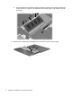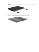 11. Rimuovere le viti dalla tastiera. Il computer presenta 2 o 3 viti da rimuovere. NOTA: Fare riferimento all'illustrazione che più corrisponde al computer utilizzato. 12. Far scorrere la tastiera (1) verso il gruppo display, quindi capovolgere la tastiera (2) per esporre lo scomparto della memoria. 13. In caso di sostituzione di un modulo di memoria, rimuovere il modulo esistente: ATTENZIONE: Per evitare di danneggiare il modulo di memoria, fare attenzione ad afferrarlo solo per i bordi.