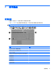 1 使用指点设备 组件 说明 (1) 触摸板 移动指针,选择或激活屏幕上的项。 (2) 触摸板左按钮 功能类似于外接鼠标的左键。 (3) 触摸板滚动区 向上或向下滚动。 (4) 触摸板右按钮 功能类似于外接鼠标的右键。 1