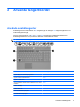 1 Använda pekdon Komponent Beskrivning (1) Styrplatta Flyttar pekaren och väljer eller aktiverar objekt på skärmen. (2) Vänster knapp på styrplattan Fungerar som vänsterknappen på en extern mus. (3) Styrplattans rullningsområde För rullning uppåt och nedåt. (4) Höger knapp på styrplattan Fungerar som högerknappen på en extern mus.