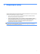 Stan uśpienia można opuścić w następujący sposób: ● Szybko przesuń włącznik. ● Jeśli wyświetlacz jest zamknięty, przez otwarcie wyświetlacza i aktywację płytki dotykowej TouchPad. ● Naciśnij klawisz na klawiaturze. Podczas wznawiania pracy komputera wskaźniki zasilania włączają się, a ekran jest przywracany do poprzedniego stanu.