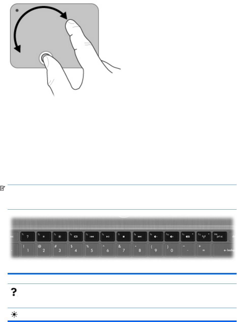 附註: 根據您使用的程式而定,按下 fn 鍵以及其中一個動作鍵可開啟該程式中的特定捷徑功能表。