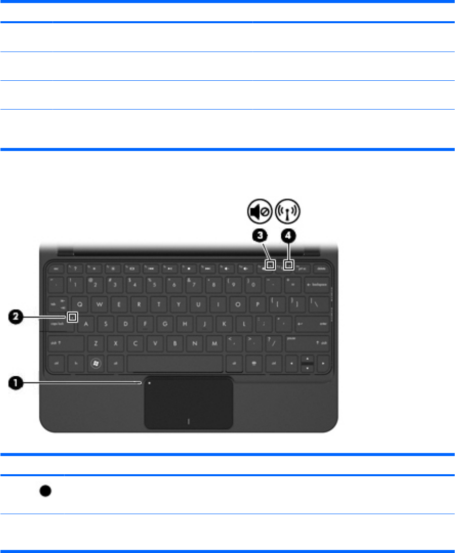 (2) Indicador luminoso de bloq mayús Encendido: Bloq Mayús está activado.