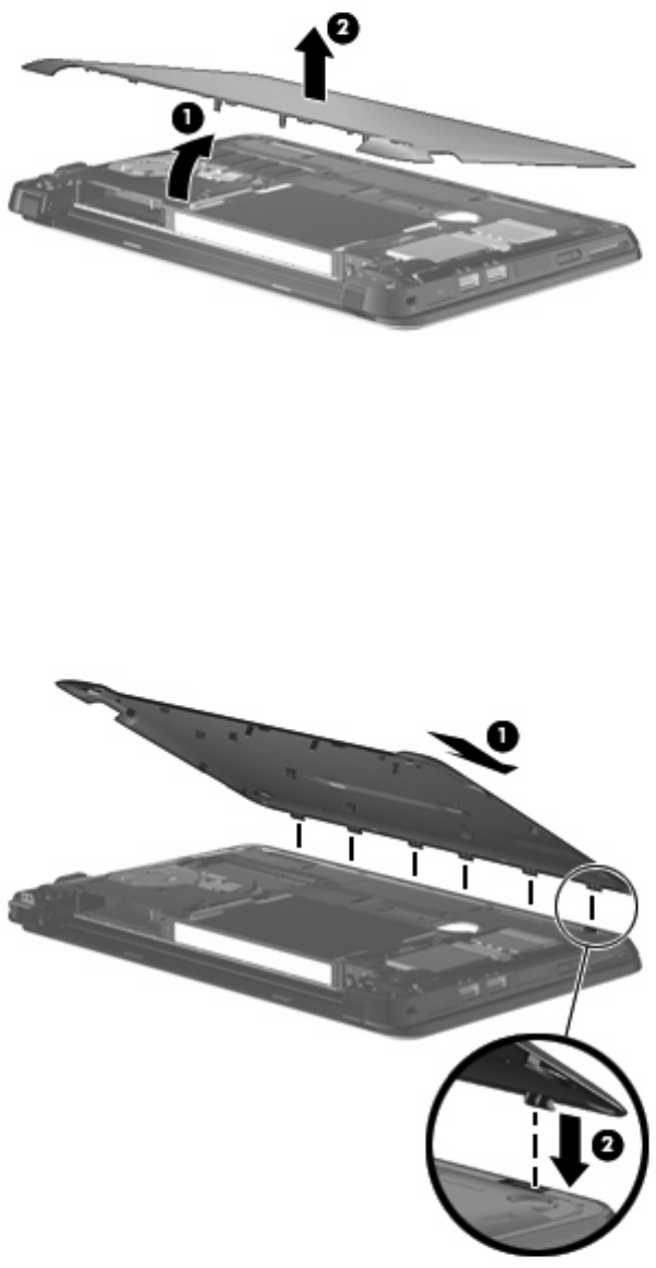 7. Levante el borde inferior de la cubierta (1) formando un ángulo, y luego sáquelo de la base (2).