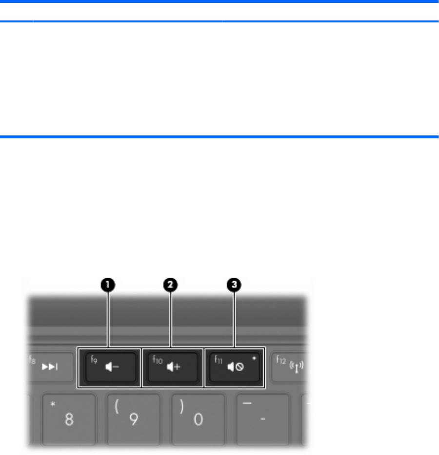 Para disminuir el volumen, presione la tecla de acción para disminuir el volumen (f9) (1).
