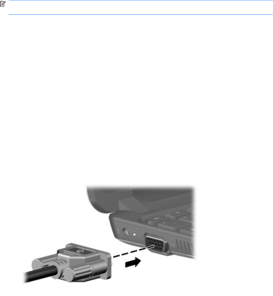 1. Conecte el cable VGA opcional al puerto de monitor externo del equipo.