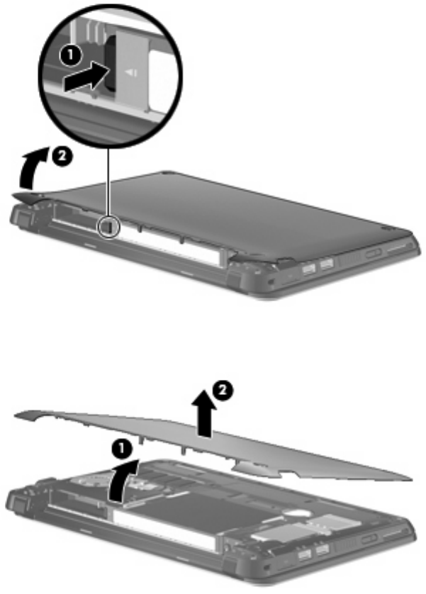 7. Levante a borda inferior da tampa interna (1) de forma inclinada, em seguida levante a tampa