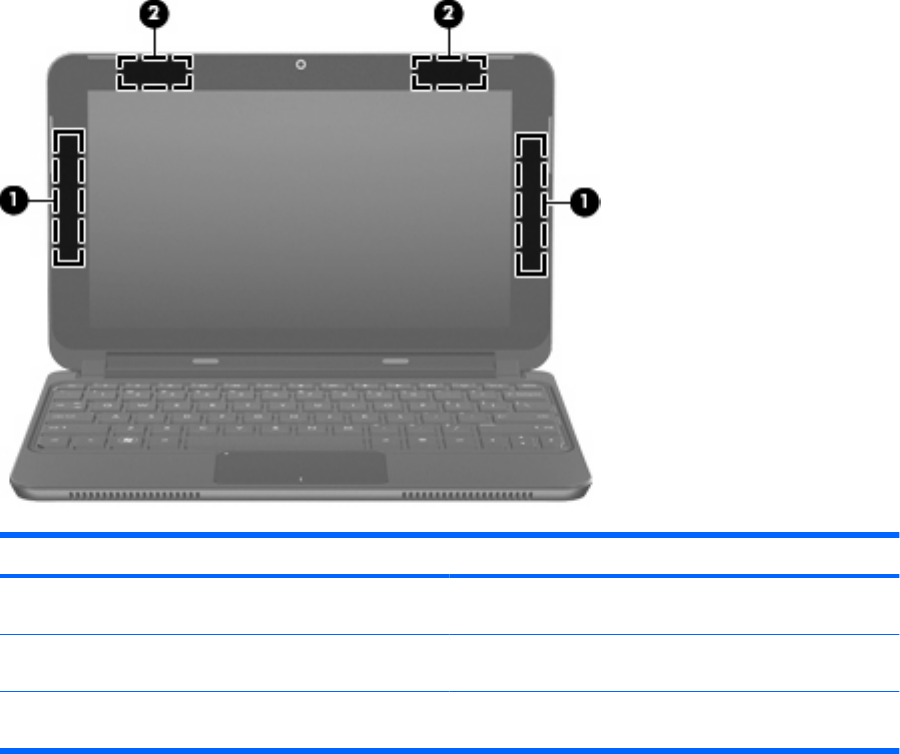 (1) Antenas de WWAN (2)* Enviam e recebem sinais de dispositivos sem fio para