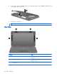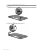 메모리 모듈함, SIM 카드 삽입 슬롯, 규정 레이블 및 기타 중요한 부품에 액세스한 후 배니티 덮개를