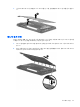 밑면 슬롯에 배니티 덮개의 탭을 맞춘 다음 6 개의 탭을 슬롯(2)에 끼워서 컴퓨터의 뒤쪽 모서리