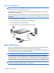 Batteriet lades når datamaskinen er koblet til strømnettet ved hjelp av strømadapteren.