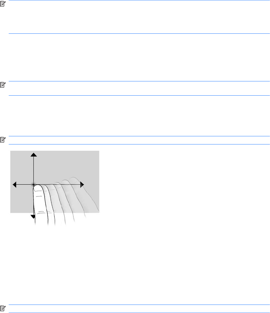 Scrolling is useful for moving up or down on a page or image. To scroll, place two fingers on the screen,