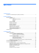 Spis treści 1 Rozpoczęcie pracy Korzystanie z HP QuickWeb (tylko w wybranych modelach) ............................................................... 2 2 Elementy urządzenia Elementy urządzenia ............................................................................................................................ 3 Elementy na górze ............................................................................................................... 3 Płytka dotykowa TouchPad ................................
