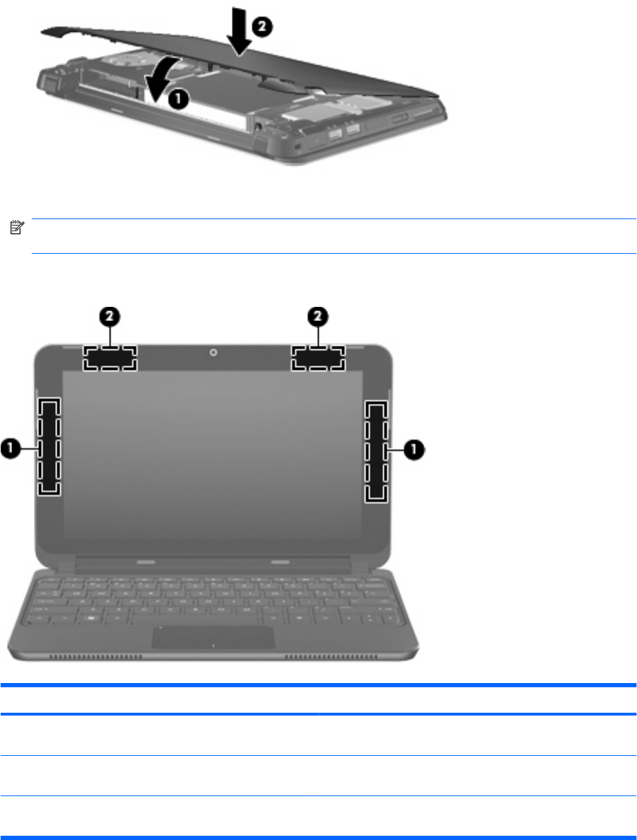 (2) WLAN antenleri (2) (yalnızca belirli modellerde)* Kablosuz yerel alan ağlarıyla (WLAN'lar) iletişim kurmak için