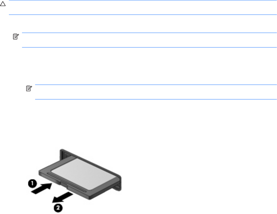 3. Dijital kartın üzerine bastırın (1) ve sonra kartı yuvasından çıkarın (2).