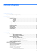 Indholdsfortegnelse 1 Sådan kommer du i gang Brug af HP QuickWeb (kun udvalgte modeller) .................................................................................... 2 2 At kende delene Identifikation af hardwaren ................................................................................................................... 3 Komponenter foroven .......................................................................................................... 3 TouchPad .................................