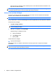 Steg 3: Ladda ur batteriet Datorn måste vara på när batteriet laddas ur. Batteriet kan laddas ur oavsett om du använder datorn eller inte, men det laddas ur snabbare om datorn används. ● Om du vill lämna datorn obevakad under urladdningen bör du spara ditt arbete innan du startar urladdningen. ● Om du använder datorn då och då under urladdningen bör du tänka på att viloläget är avstängt, vilket innebär följande: ◦ Bildskärmen stängs inte av automatiskt.