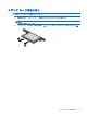 注記: 装着されている ExpressCard は、使用されていなくても電力を消費します。節電するには、 使用していない ExpressCard を停止するか、取り出してください。 ExpressCard の取り出し 注意: データの損失やシステムの応答停止を防ぐため、ExpressCard を取り出す前にカードにアク セスしていないことを確認してください。 1. 情報を保存し、ExpressCard に関連するすべてのプログラムを閉じます。 注記: ExpressCard の安全な取り出しの手順について詳しくは、ExpressCard に付属の説明書 を参照してください。 2. 6 ExpressCard の固定を解除して取り出すには、以下の操作を行います。 a. ExpressCard をゆっくり押し込んで(1) 、固定を解除します。 b.