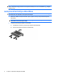 Memóriakártya behelyezése VIGYÁZAT! A számítógép és a memóriakártya károsodásának megelőzése érdekében ne helyezzen átalakítót az SD kártyaolvasóba. VIGYÁZAT! A memóriakártya-csatlakozó sérülésének elkerülése érdekében a memóriakártyát a lehető legkisebb erőkifejtéssel illessze be. 1. Tartsa a memóriakártyát úgy, hogy a címke felfelé, a csatlakozók pedig a számítógép felé nézzenek. 2. Helyezze a kártyát az SD kártyaolvasóba, majd tolja be addig, hogy pontosan érintkezzen.