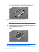 13. Dra åt skruven till minnesmodulfackets lock (3). 14. Sätt tillbaka batteriet. 15. Vänd datorn rätt igen och återanslut sedan nätströmmen och de externa enheterna. 16. Sätt på datorn.