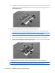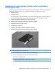 Dodavanje ili zamjena memorijskog modula u utor za proširivanje memorijskog modula Utor za memorijski modul za proširivanje smješten je iznad utora za primarni memorijski modul. Da biste dodali ili zamijenili memorijski modul u utoru za memorijski modul za proširivanje, slijedite ove korake: 1. Spremite svoj rad. 2. Isključite računalo i zatvorite zaslon. Ako niste sigurni je li računalo isključeno ili je u stanju hibernacije, uključite računalo pritiskom na gumb za uključivanje i isključivanje.